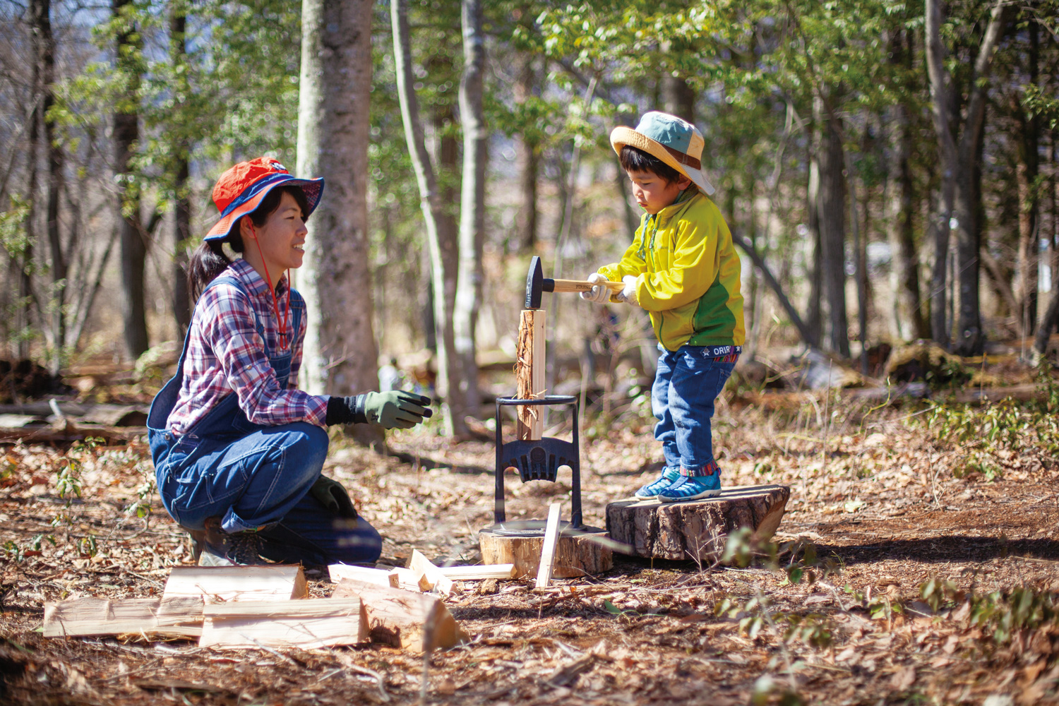 薪づくりキンドリングクラッカーとハンマーさえあれば、誰でも焚き付けがあっという間に山をなします。