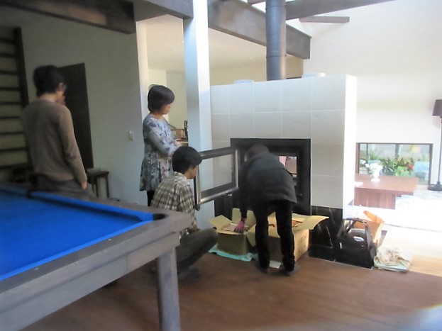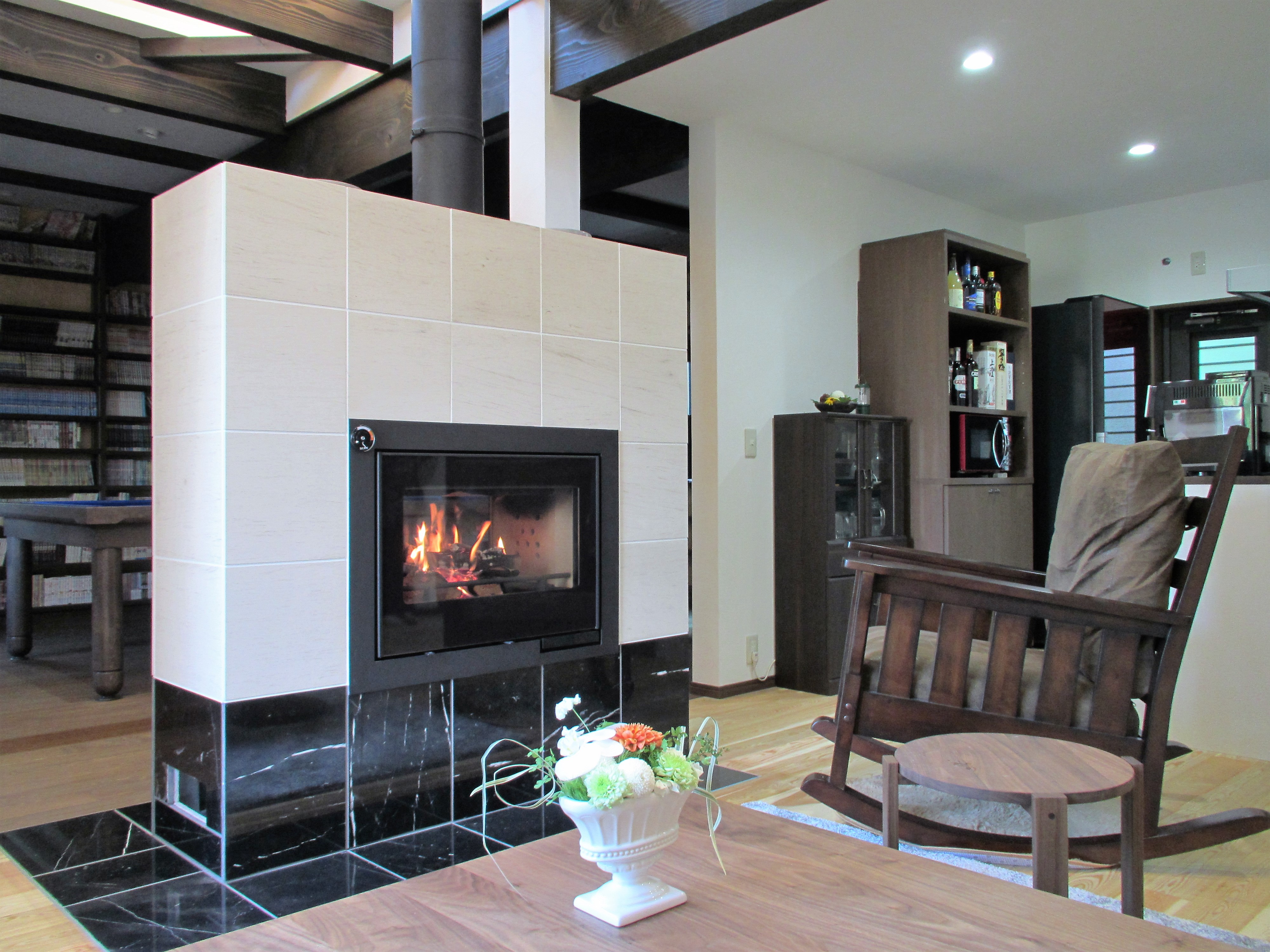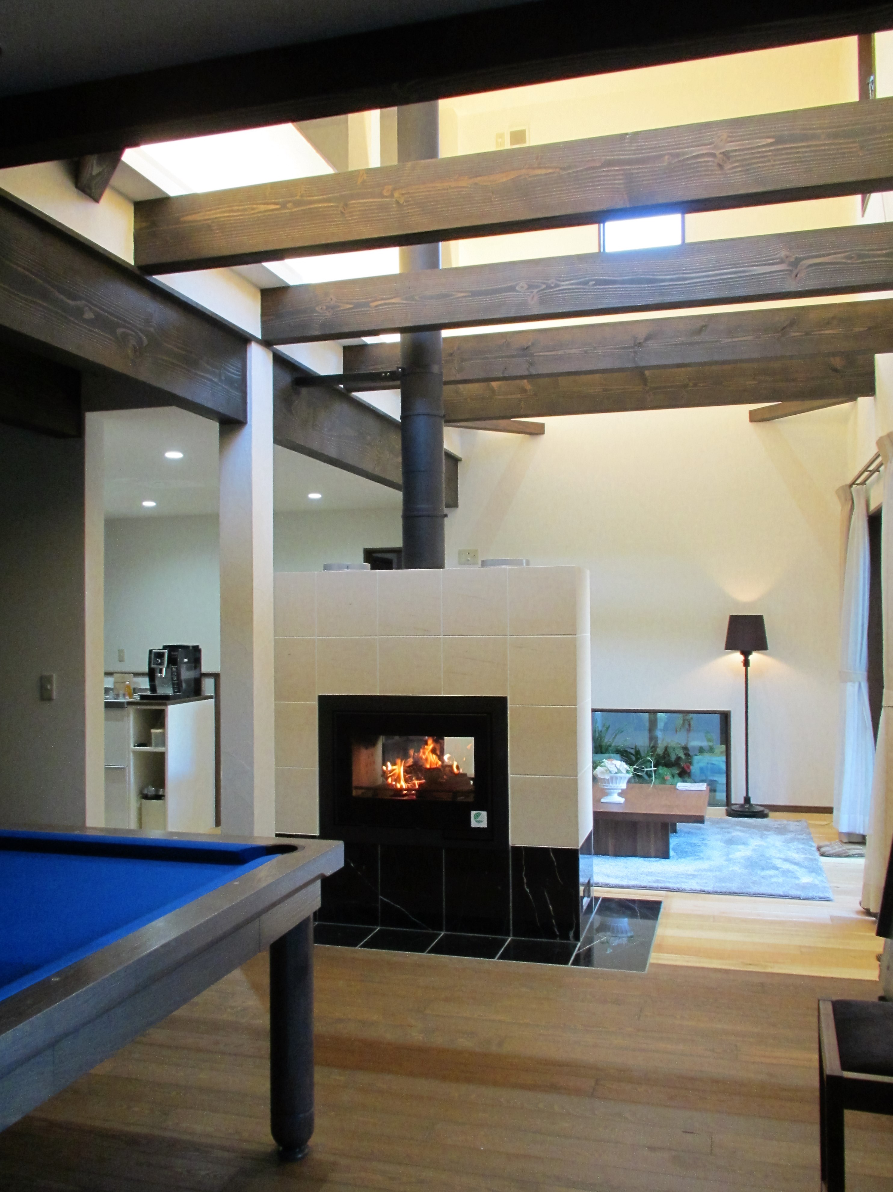 今回のオーナー様宅では、リビングから、そして反対側のビリヤードルームから美しい炎が眺められます。