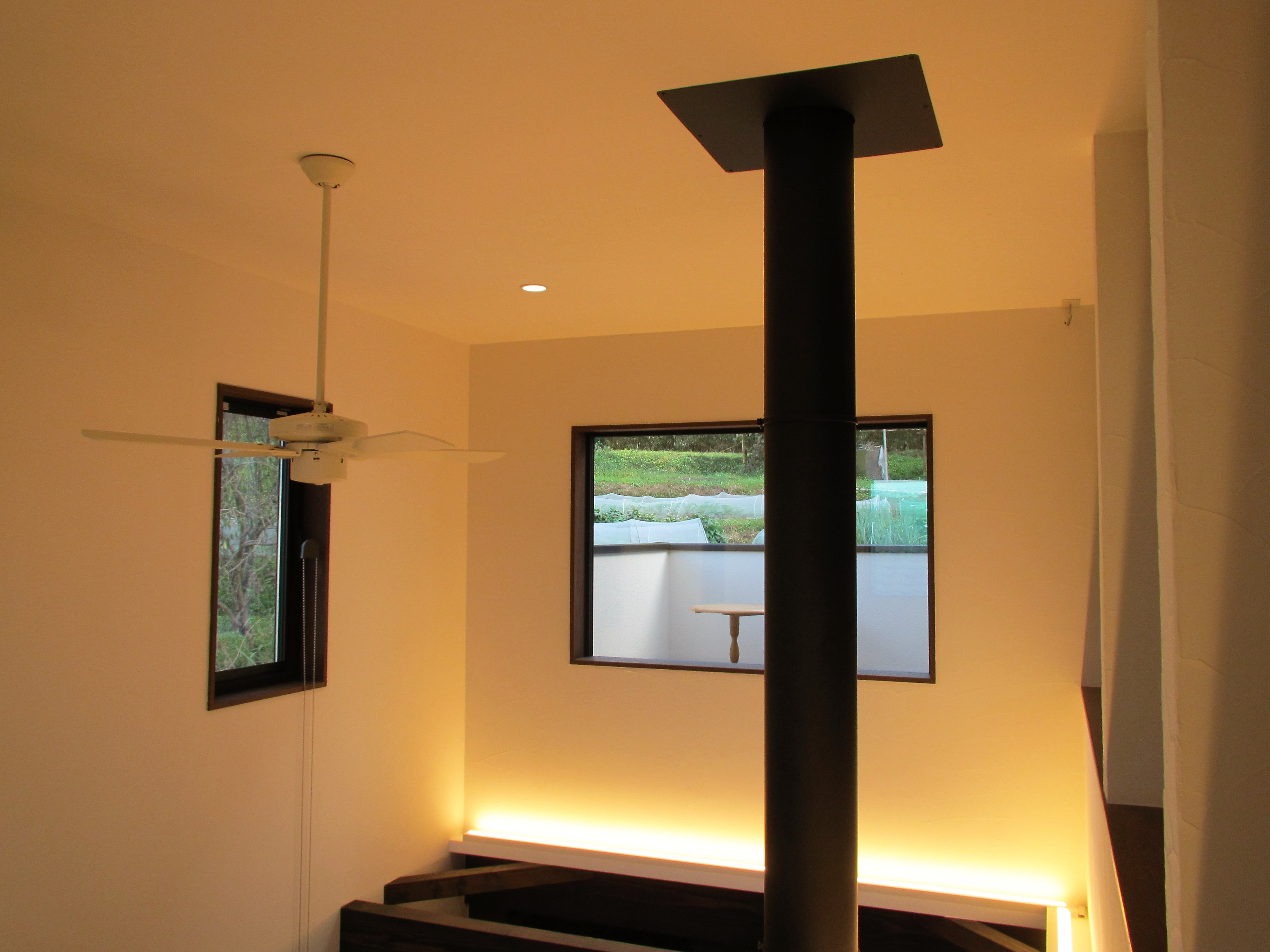 室内で暖められた空気は吹き抜けを通って、2階の部屋も暖めてくれます。