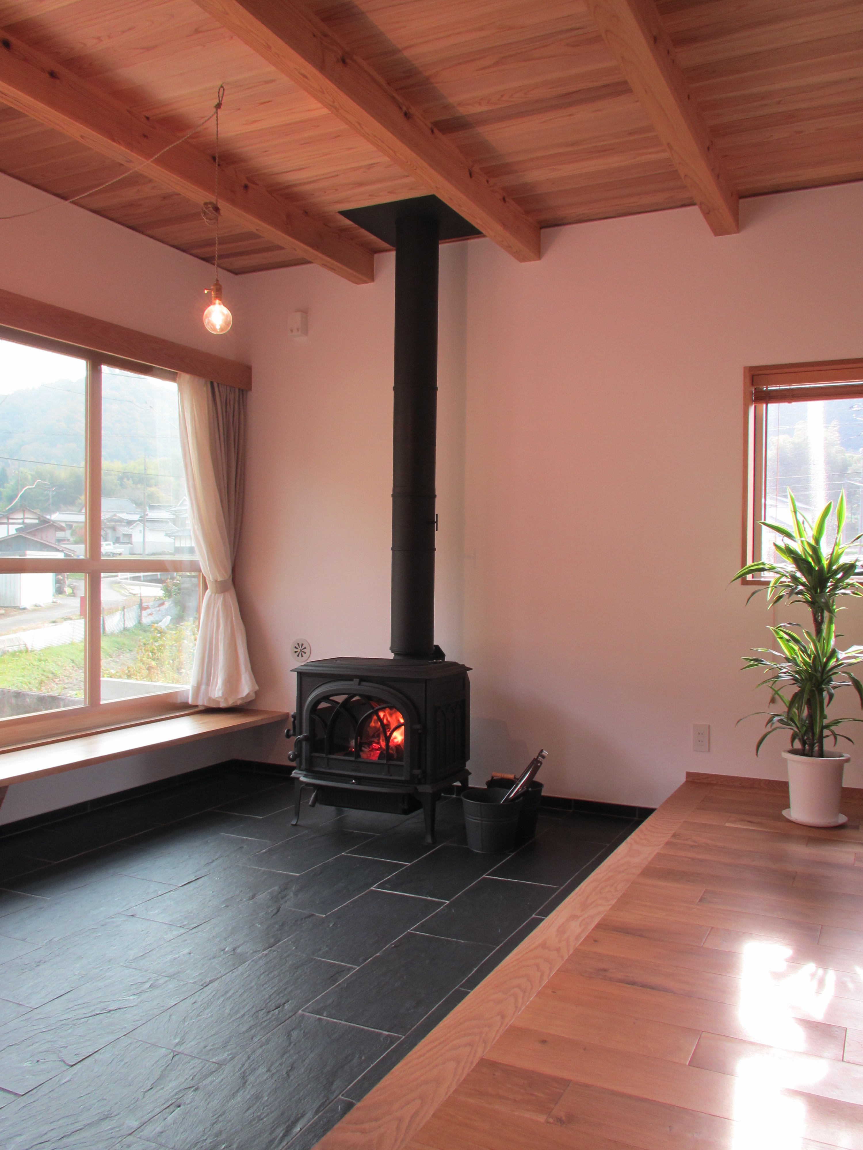 現場レポート 2016/11/29掲載 薪ストーブ取扱説明【美作市】 日に日に寒さが厳しくなってきました。 先日は美作市で薪ストーブの取扱い説明でした。 新築住宅へ「ヨツールF500」を設置しました。 リビング横の土間スペースは薪ストーブのための空間です。 窓際にはベンチがあり、座って炎を眺めることができます。 ヨツールF500の美しいオーロラの炎。 住宅の設計施工は美作土建さんです。 薪ストーブのある素敵な空間を作られています。