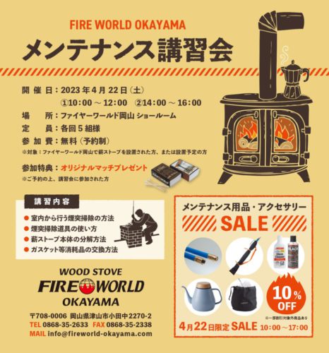 ※ファイヤーワールド岡山で薪ストーブを設置された方、または設置予定の方が対象。
