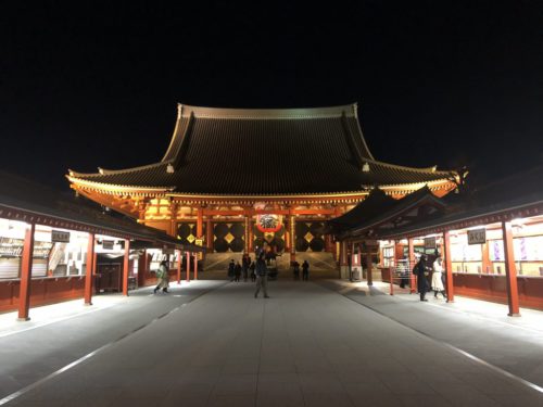 昼間の人がごった返している様子とは一変して、静かな浅草寺でした…。