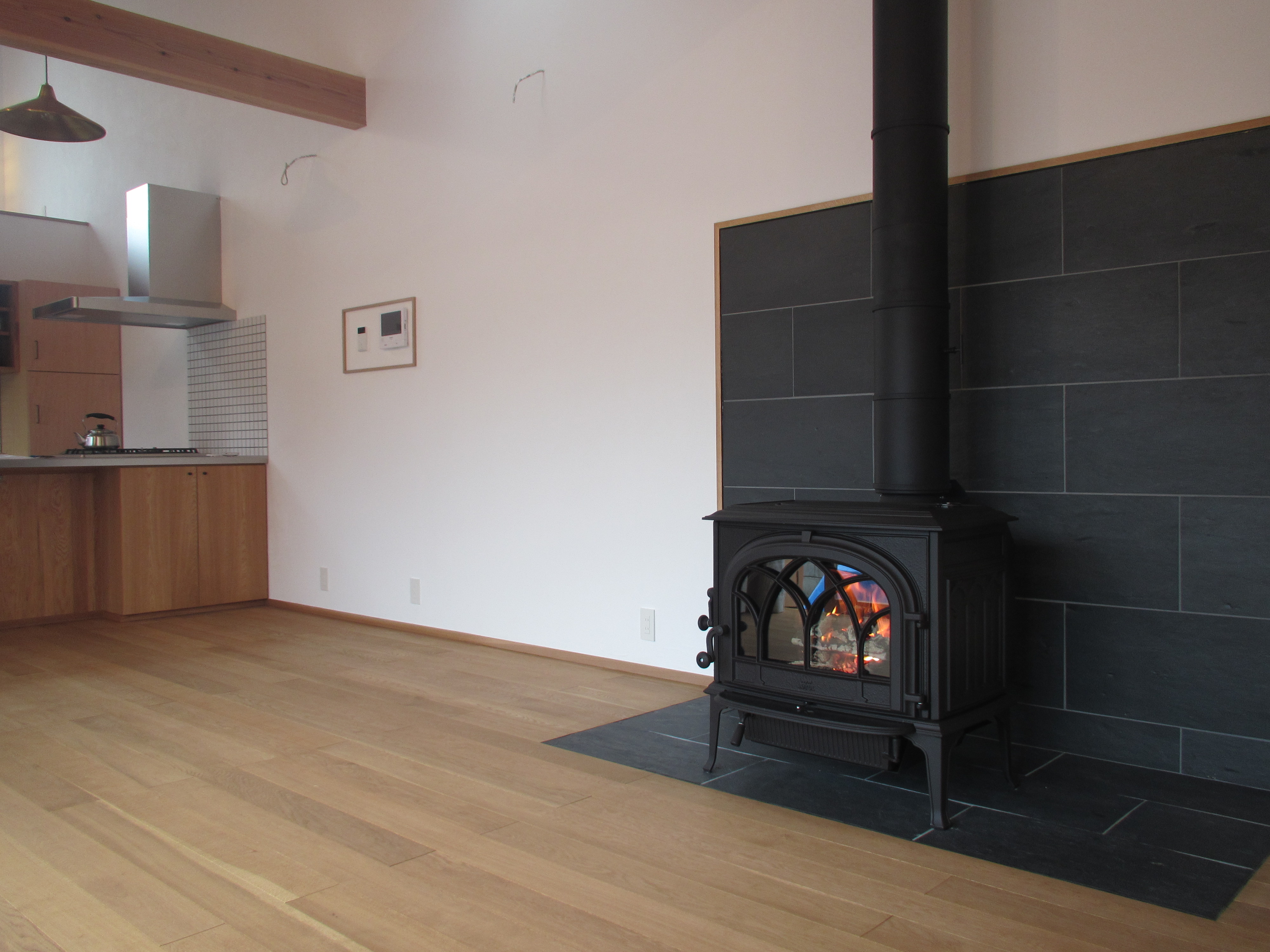 現場レポート 2017/2/7掲載 薪ストーブ取扱説明【津山市】 今朝も寒い朝になりました。 先日、新築住宅で薪ストーブの取扱説明をさせていただきました。 ストーブは人気機種のヨツールF500。 落ち着いた雰囲気の炉台は玄昌石という天然石です。 シンプルな片流れの屋根に煙突が見えます。 グレーの壁の色に黒い煙突がよく合いますね。 住宅の設計施工は美作土建さんです。 いつも薪ストーブのある素敵な住宅を設計されています。
