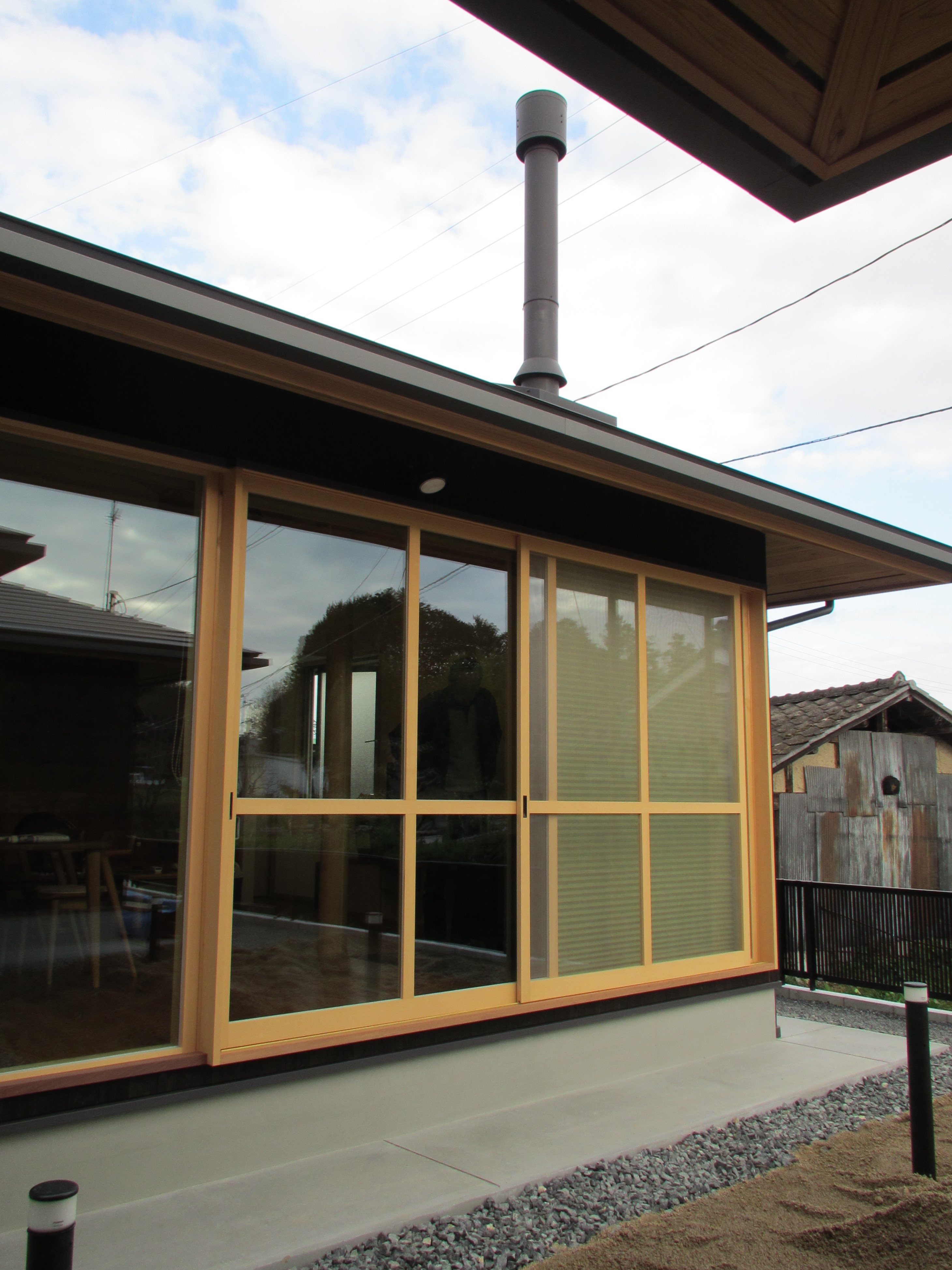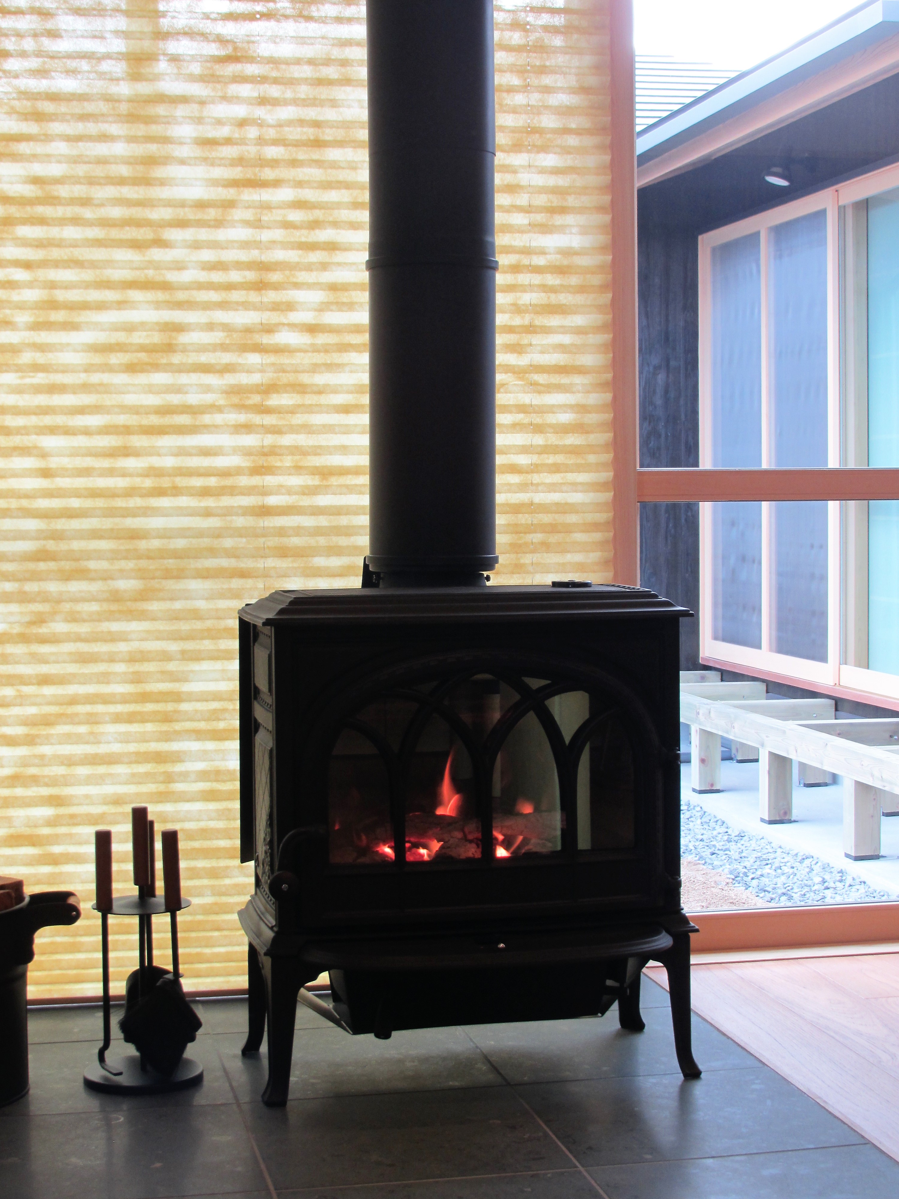 現場レポート 2017/2/8掲載 薪ストーブ取扱説明【津山市】 津山市で薪ストーブ取扱説明を行いました。 新築住宅へヨツールF400を設置しました。 定番の人気機種 「ヨツール F400」 格子のガラスから見えるオーロラの炎が特徴です。 平屋の屋根から煙突が見えます。 こちらの住宅もいつもお世話になっている美作土建さんの設計施工です。 薪ストーブのある素敵な家を多く設計されています。