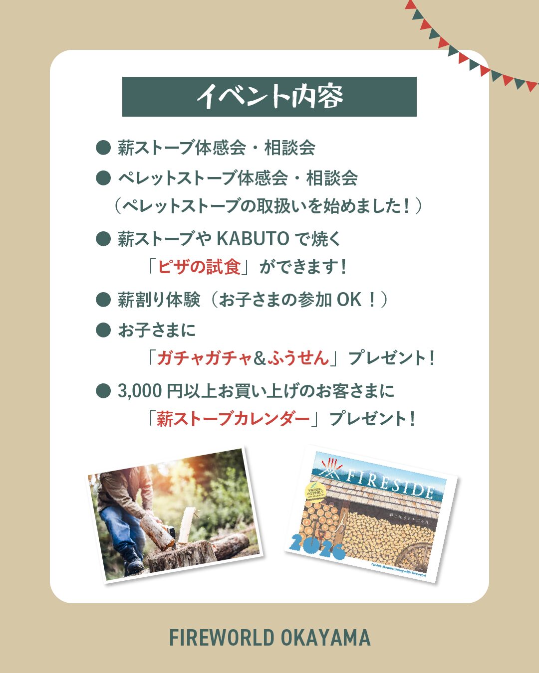 3,000円以上お買い上げのお客様に「薪ストーブカレンダー」をプレゼント🙌