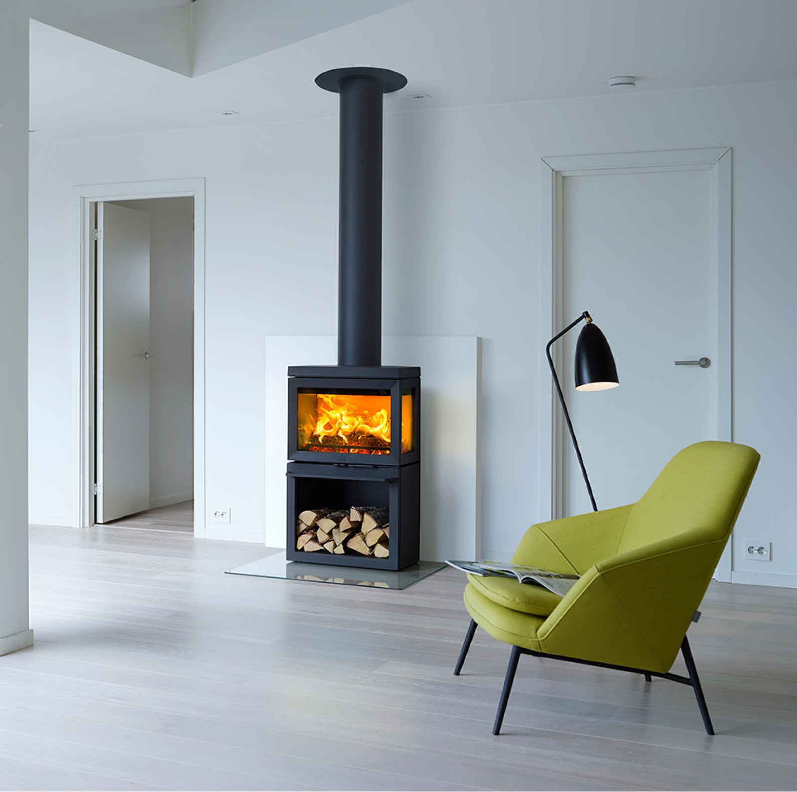 Jøtul F 520はリビングでキャンプファイヤーのような炎を楽しめます。幅広い大きなガラスでデザインされており、フロント、両サイドの3面ガラス。このガラスは特別なコーティング(熱線反射ガラス)で煤がつきにくく、ガラスをきれいに保ちます。シンプルな空気調整レバーで、着火も簡単で日常でもストレスなくご使用いただけます。50cmの薪が入る燃焼室はホワイトエナメル仕上げで炎を見ている時も、そうでない時も明るくクリーンな印象に。ベースには薪を入れることができ、実用面でも優れています。厳しいヨーロッパの環境基準NS3058(ノルウェー規格3058)を満たす、人にも環境にも優しいキャンプファイヤーを室内でお楽しみください。