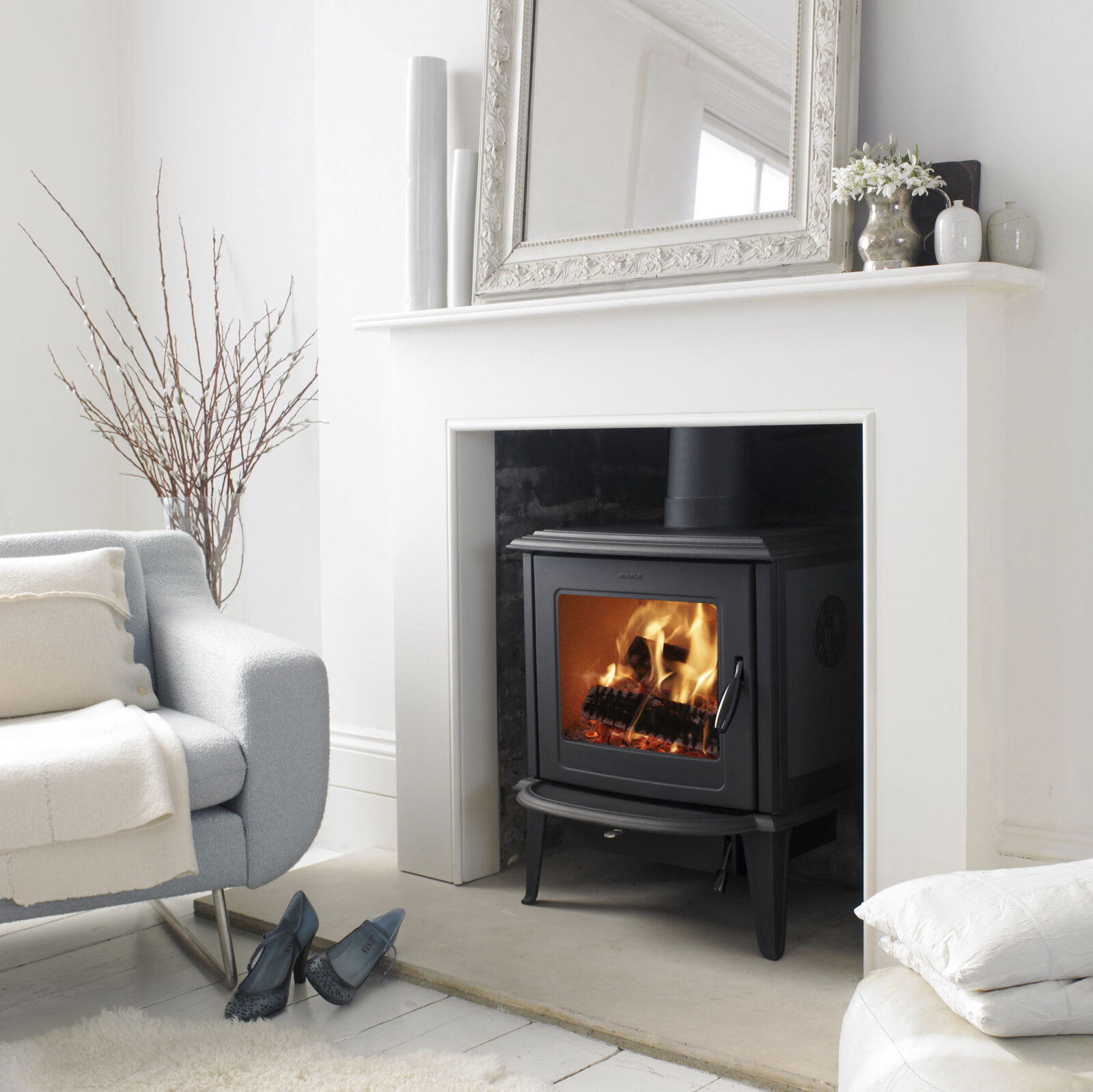 その為、このシリーズのストーブは現代風様式やクラシック様式の建物に関係なく調和することでしょう。7110CBは「バイキングストープ」とも呼ばれており、フルーティング(縦溝彫り)を施したサイドプレートにバイキング時代からのシンボルマークが彫り込まれています(7140CBはフルーティングのみ)。北欧ではこのマークを「セイント・ヨハネス・シールド」と呼んでおり、魔除けのシンボルマークとして信じられていました。