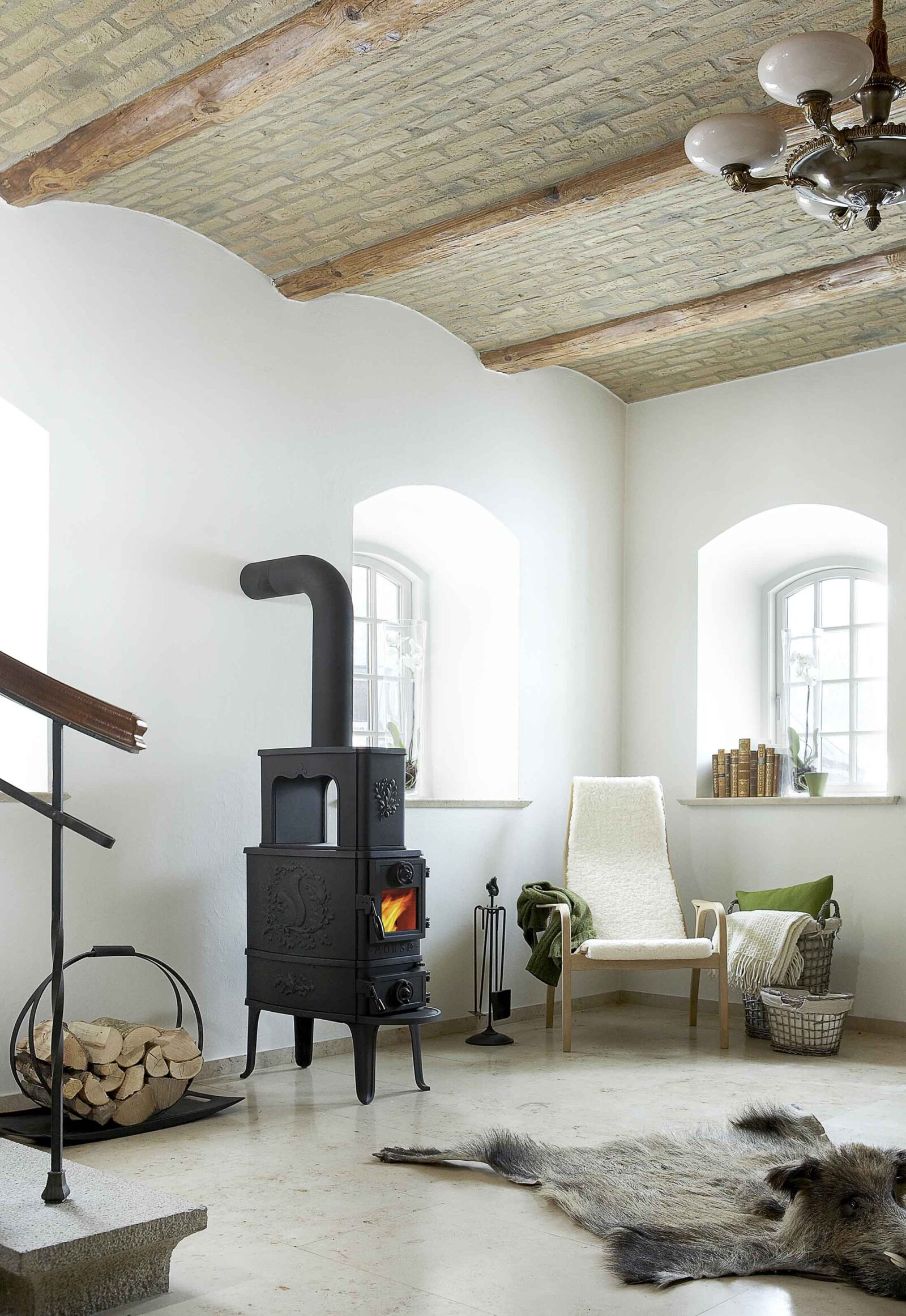 その後、薪がパチパチと音を立てて爆ぜながら神秘的に揺れ動いている炎の様子が眺められるガラスドアーと今日求められている厳しい環境要件をクリアーする為の燃焼技術を装備したものへと生まれ変わり、好評を得ています。