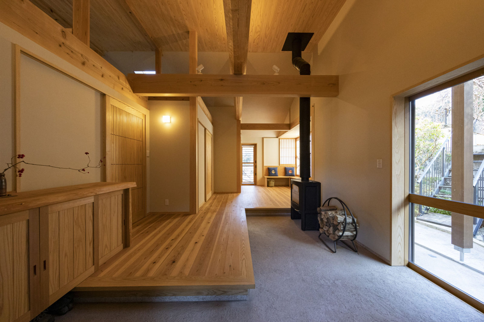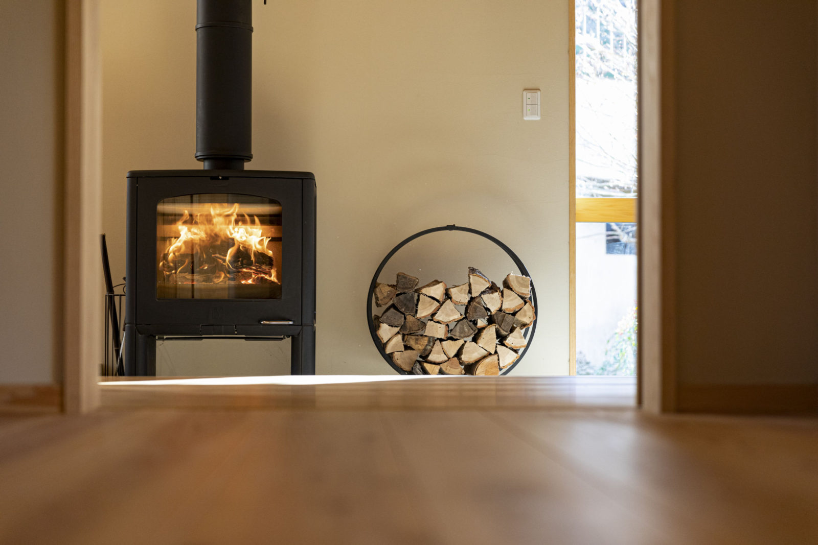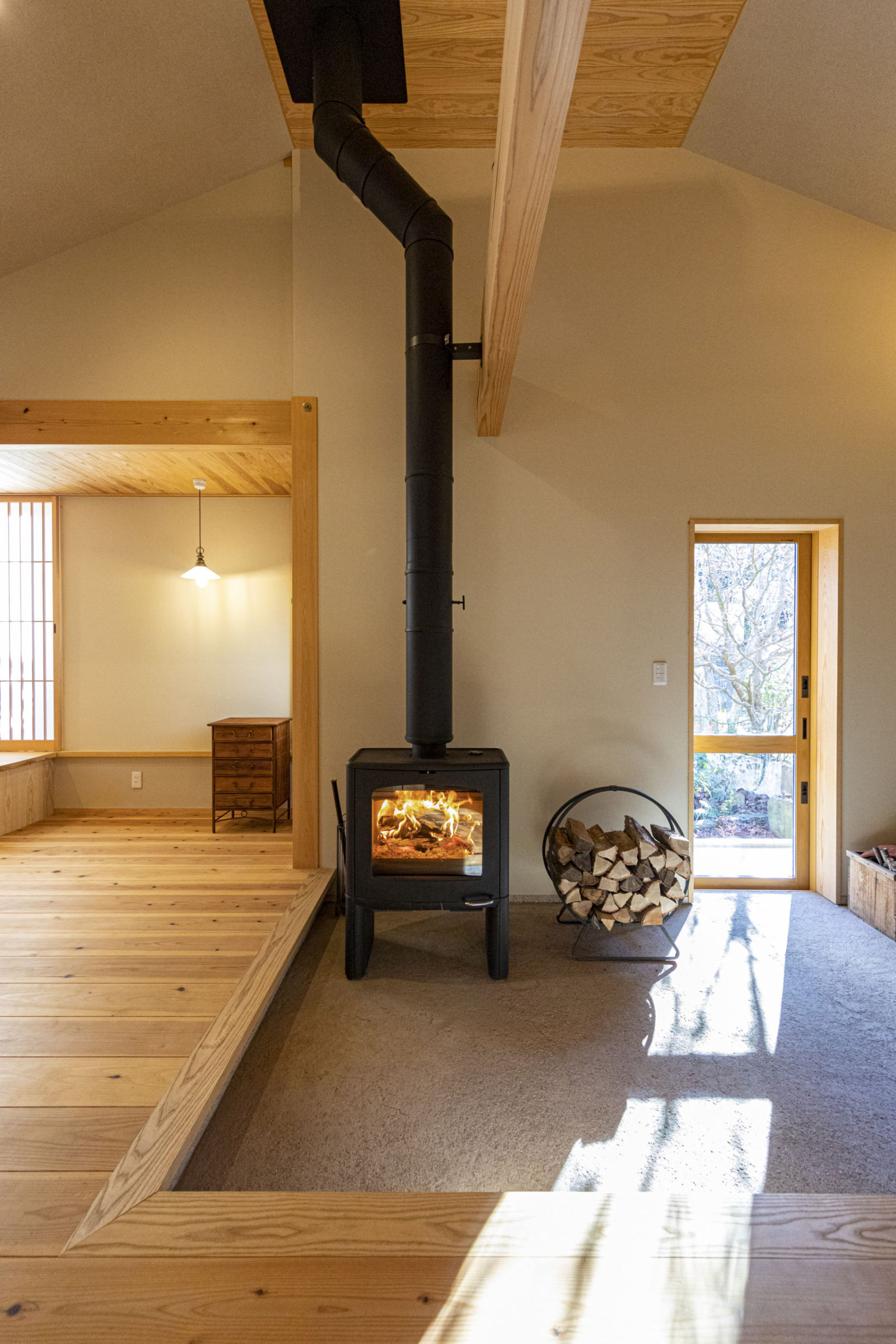 広い玄関土間に薪ストーブを設置しました。
