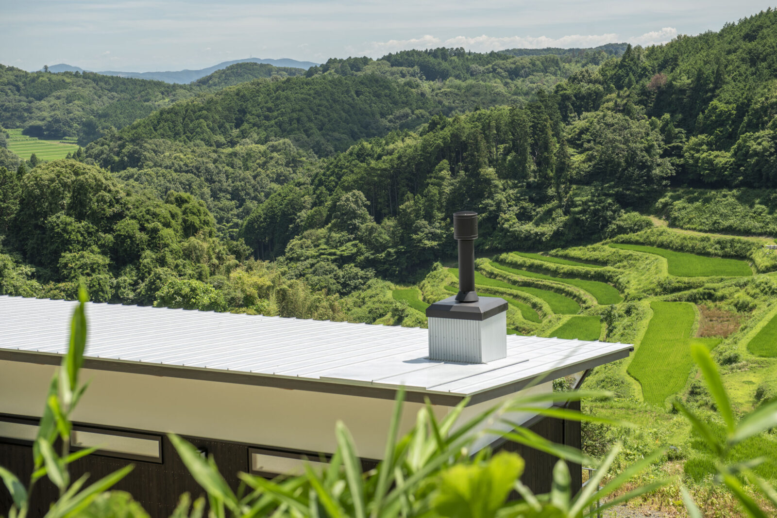 棚田の景色と薪ストーブの炎を眺めながら、ゆったりとした気持ちでお食事ができます。