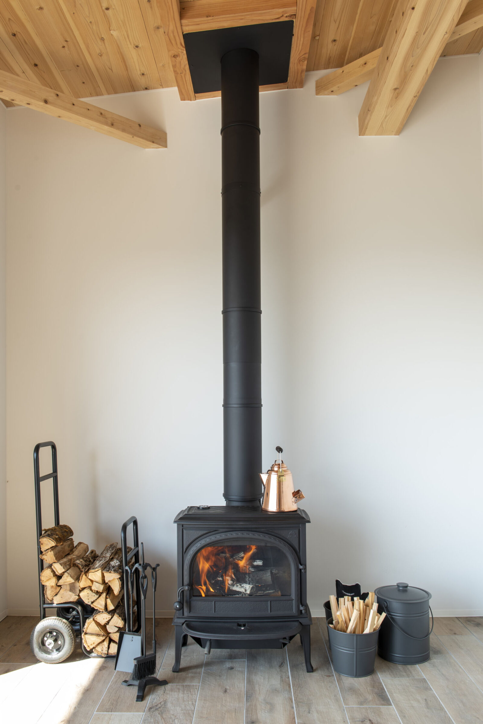 クラシックタイプの薪ストーブがお客様をお迎えいたします。